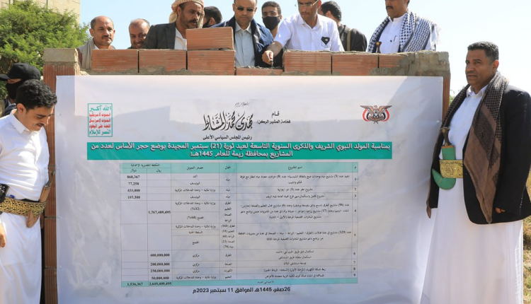 افتتح فخامة المشير الركن مهدي المشاط رئيس المجلس السياسي الأعلى، ووضع حجر الأساس لعدد من المشاريع الخدمية والتنمية بمحافظة ريمة، بمناسبة احتفالات الشعب اليمني بثورة الـ 21 من سبتمبر.