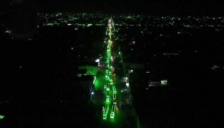 جابت مسيرة ضوئية تضم 100 قاطرة بترولية متوهجة باللون الأخضر عددًا من شوارع مدينة ذمار احتفاء بذكرى المولد النبوي الشريف.
