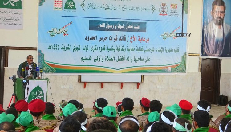 نظمّت مديرية الإسناد اللوجستي في قوات حرس الحدود بمحافظة صعدة اليوم فعالية ثقافية وخطابية بذكرى المولد النبوي الشريف على صاحبها وآله أفضل الصلاة وأزكى التسليم تحت شعار “لبيك يا رسول الله”.