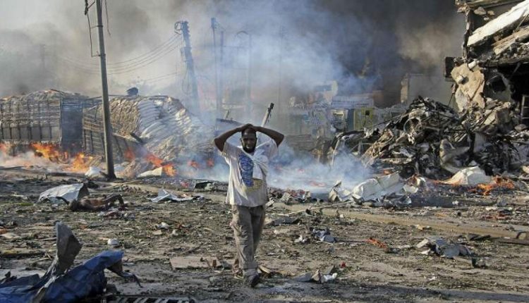 قتل 20 شخصاً على الأقل، وأصيب 10 بينهم إصابات بالغة، جراء تفجير انتحاري بشاحنة مليئة بالمتفجرات وسط الصومال.