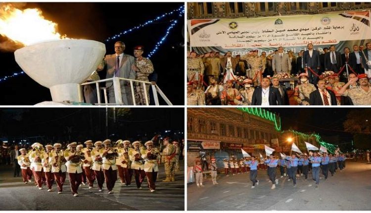 : احتضن ميدان التحرير في العاصمة صنعاء، مساء اليوم الاثنين، حفل إيقاد شعلة العيد الـ61 لثورة 26 سبتمبر الخالدة، نظمته وزارة الشباب والرياضة وجمعية الكشافة والمرشدات.