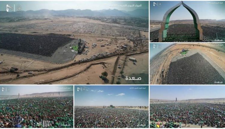 احتشد أبناء محافظة صعدة، اليوم الأربعاء، في ساحة الرسول الأعظم للاحتفال بذكرى المولد النبوي الشريف في حشد جماهيري كبير وغير مسبوق.