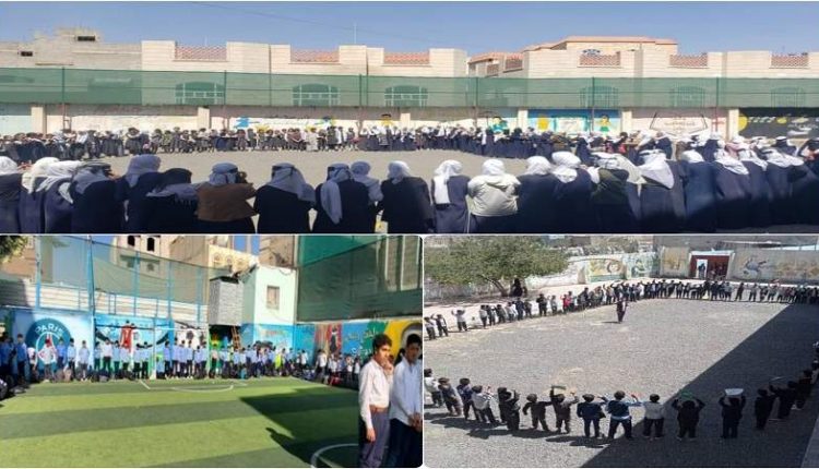 نُظمت بمدارس مديريات محافظة صنعاء اليوم الثلاثاء، وقفات طلابية تعزيزاً للهوية الإيمانية والتصدي لمخططات ومؤامرات العدوان تحت شعار “القرآن منهجنا والإيمان هويتنا”.