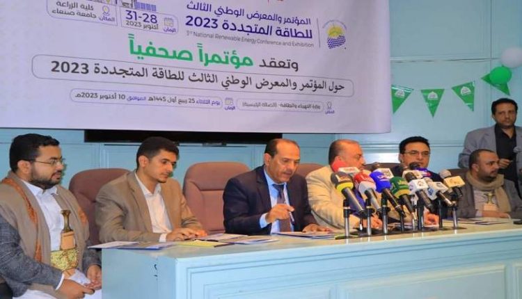 عقدت وزارتا الكهرباء والطاقة والمالية اليوم الثلاثاء، مؤتمراً صحفياً حول المؤتمر والمعرض الوطني الثالث للطاقة المتجددة 2023 الذي سيقام خلال الفترة 28 – 31 أكتوبر الجاري برعاية الرئيس مهدي المشاط.