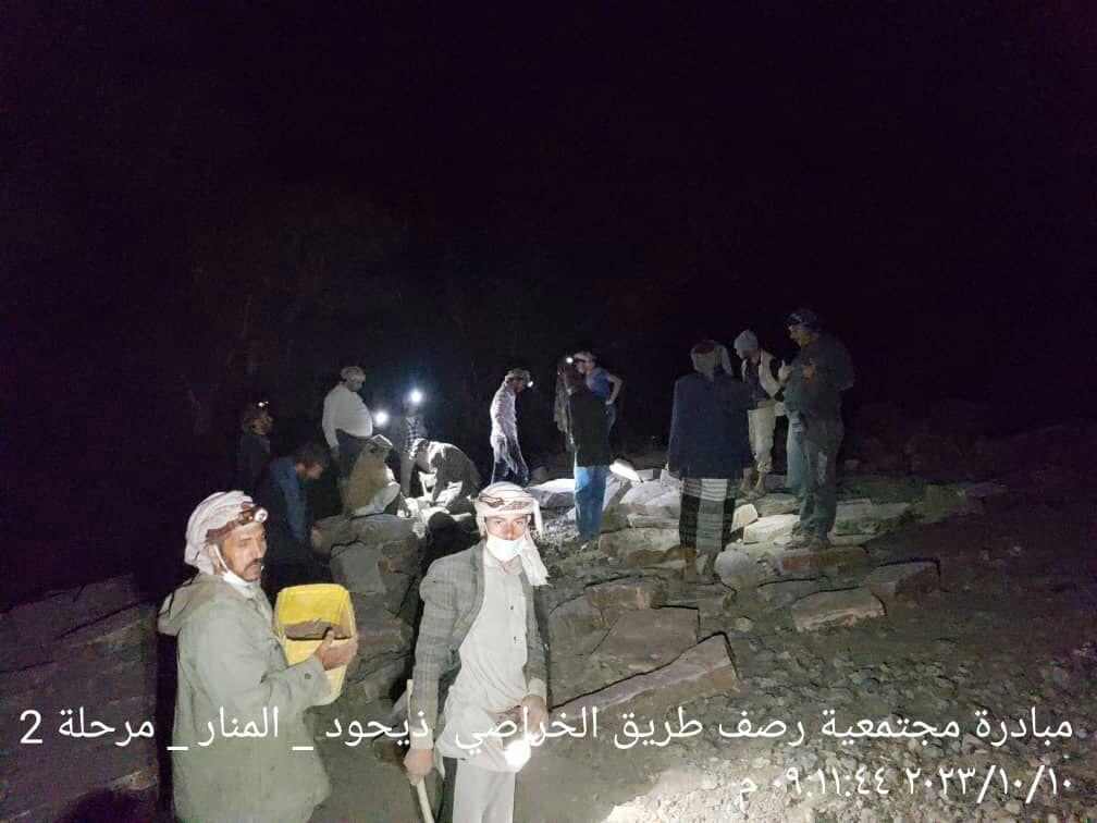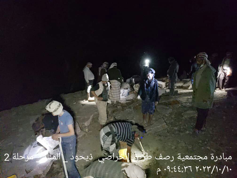 وأوضح مصدر محلي ان المواطنين يعملوا في الفترة الصباحية بمزارعهم وفي ساعات الليل يواصلوا العمل في رصف الطريق بهمة عالية وجهد منقطع النظير.