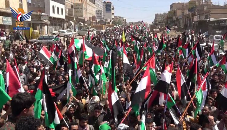 وجدد المشاركون في مسيرة قعطبة ووقفة الحشاء، التأكيد على الموقف الثابت للشعب اليمني إلى جانب الشعب الفلسطيني ومقاومته الباسلة، في مواجهة آلة الحرب الصهيونية، باعتبار القضية الفلسطينية قضية العرب والمسلمين الأولى.