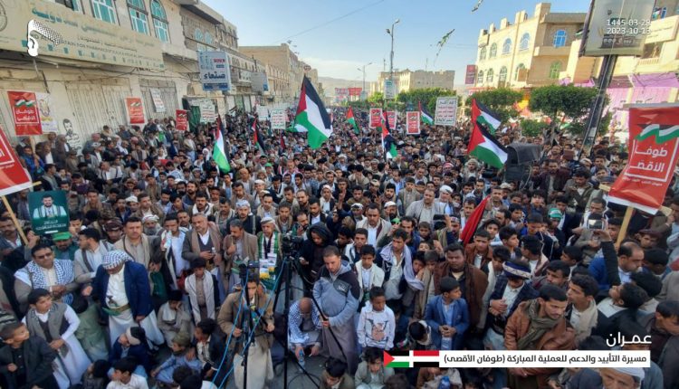 أبناء محافظة عمران في مسيرة حاشدة تأييداً لعملية “طوفان الأقصى” وإسناداً للمقاومة الفلسطينية
