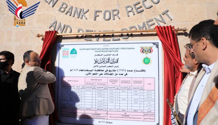 قام فخامة المشير الركن مهدي المشاط رئيس المجلس السياسي الأعلى اليوم بزيارة إلى محافظة البيضاء، افتتح خلالها 208 مشاريع خدمية وتنموية ومبادرات مجتمعية بتكلفة 10 مليارات و74 مليوناً و268 ألف ريال.