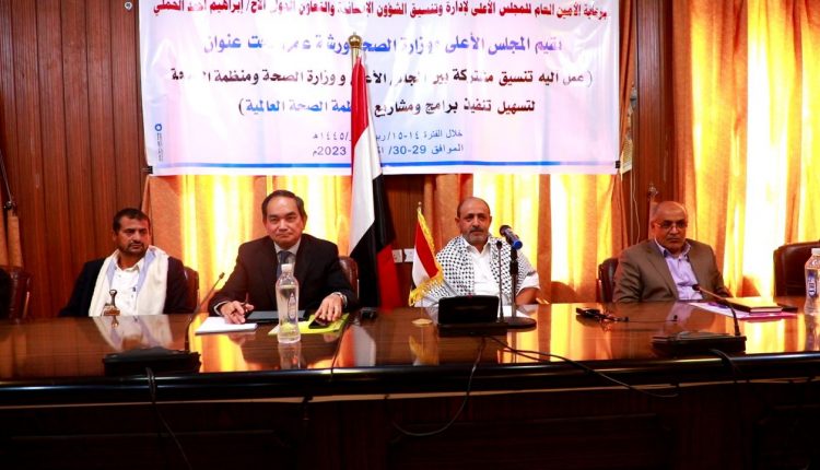 ورشة عمل تنسيقية بين المجلس الأعلى للشؤون الإنسانية ووزارة الصحة مع منظمة الصحة