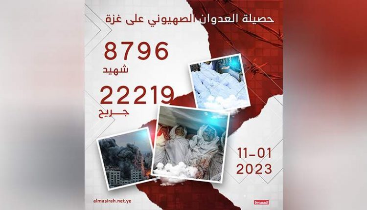 ارتفاع حصيلة العدوان الصهيوني على قطاع غزة إلى 8796 شهيداً بينهم 3648 طفلا
