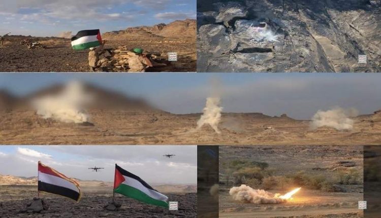 وتم خلال المناورة العسكرية، رفع العلمين اليمني والفلسطيني، للتأكيد على ارتباط قضية ومظلومية الشعبين اليمني والفلسطيني وتعرضهما لعدوان وحصار من قبل التحالف الأمريكي الصهيوني وأدواتهما السعودية والإمارات بدعم غربي، وارتكابهم لمجازر يندى لها جبين الإنسانية في اليمن وفلسطين.