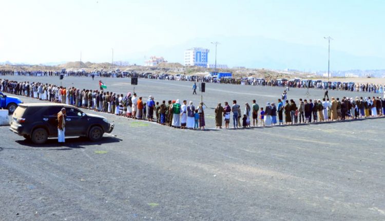 وقفة احتجاجية بمديرية التعزية تنديداً بجرائم العدو الصهيوني في غزة