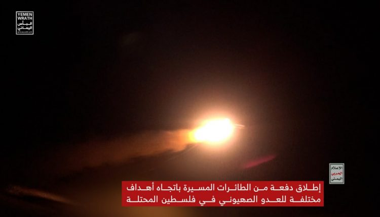 ونشر الإعلام الحربي ، مساء اليوم الثلاثاء مشاهد لعملية إطلاق دفعة من الطائرات المسيرة التي استهدفت بها اهداف مختلفة في الأراضي الفلسطينية المحتلة.