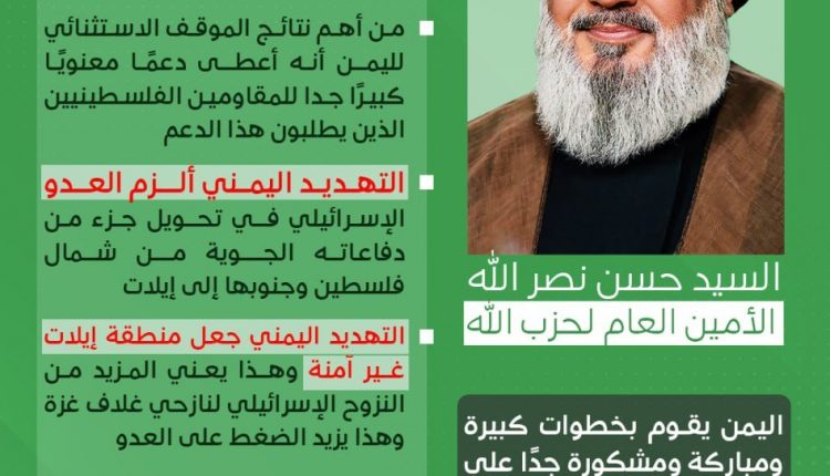 أهم ما ورد في خطاب السيد نصرالله بمناسبة يوم الشهيد بخصوص اليمن (انفو…) أهم ما ورد في خطاب السيد نصرالله بمناسبة يوم الشهيد بخصوص اليمن (انفو…) On نوفمبر 11, 2023 Share يمني برس- انفوجرافيك Share