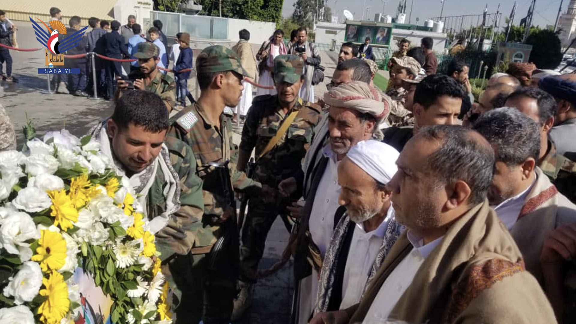 زار مدير مكتب رئاسة الجمهورية أحمد حامد وقيادات وموظفو المكتب والجهات التابعة له اليوم، ضريح الرئيس الشهيد صالح الصماد ورفاقه في ميدان السبعين ورياض ومعارض الشهداء بأمانة العاصمة في إطار إحياء الذكرى السنوية للشهيد.