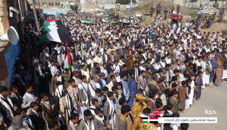 شهد مركز محافظة حجة ومديريات المحافظة أمس مسيرات ووقفات دعما لصمود الشعب الفلسطيني ومقاومته الباسلة تحت عنوان (مع فلسطين جاهزون لكل الخيارات).