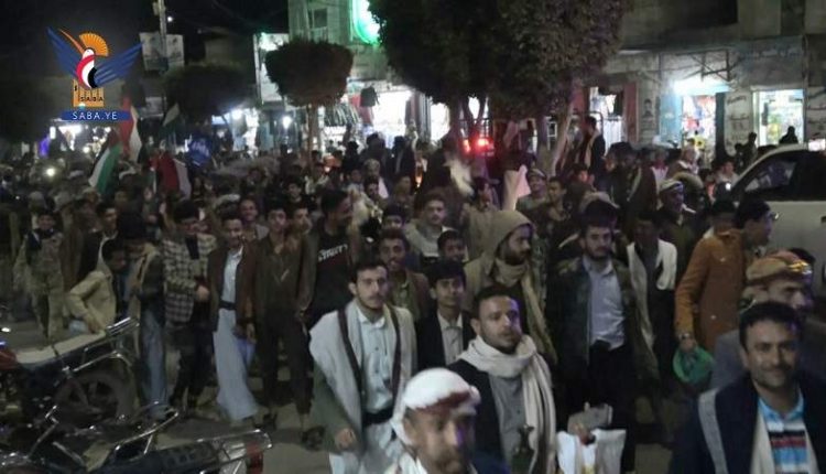 وأكد بيان صادر عن المسيرة ضرورة استمرار العمليات العسكرية في باب المندب حتى يتوقف العدو الصهيوني عن عدوانه على قطاع غزة، محذرا الصهاينة والأمريكان من مغبة أي تصعيد، الذي سيواجه بتصعيد يمني نصرة للأقصى.
