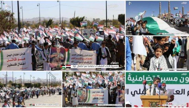 شهد ميدان السبعين بالعاصمة صنعاء، اليوم الخميس، مسيرة للأطفال من أبناء الشهداء تضامنا مع أطفال غزة والشعب الفلسطيني واستنكارا لجرائم العدو الصهيوني.