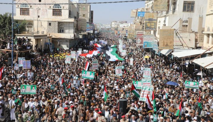 وجدد بيان صادر عن المسيرة التأكيد على وقوف الشعب اليمني إلى جانب الشعب الفلسطيني والمقاومة الباسلة على كل الجبهات.