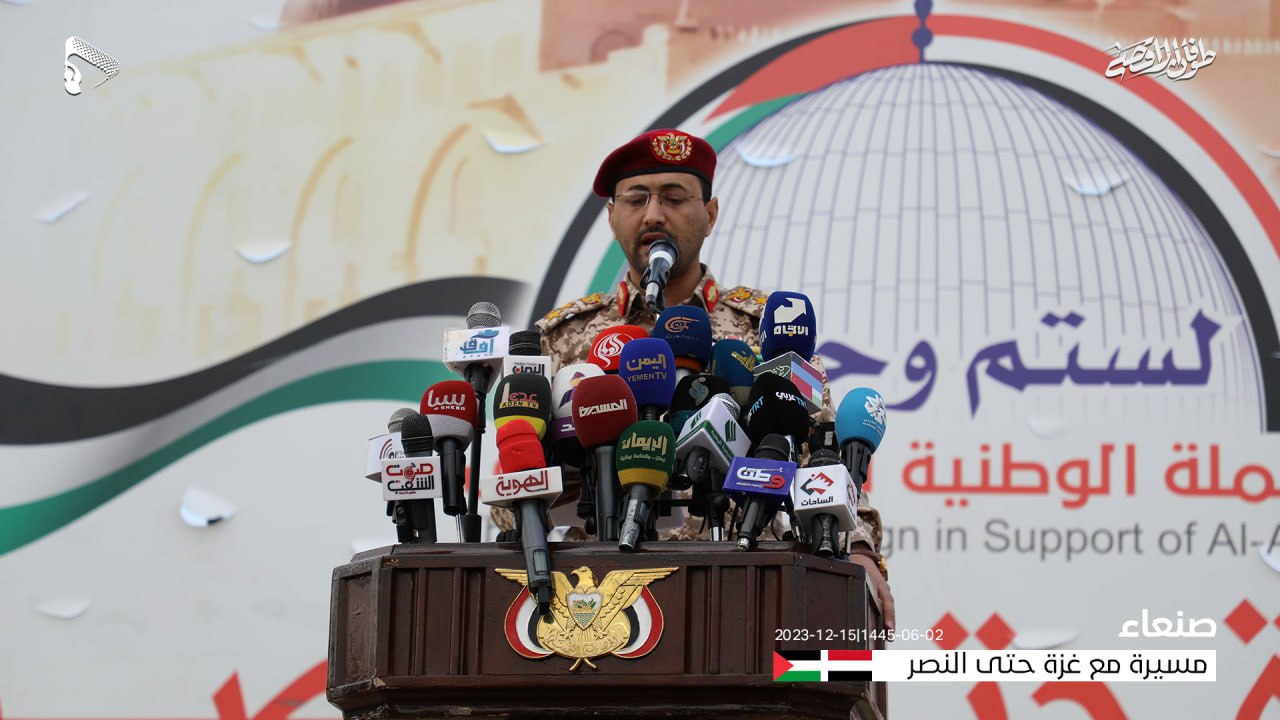وشدد بأن القوات المسلحة لن تتردد في استهداف أي سفينة تخالف ما ورد في بياناتها السابقة، واستمرارها في منع كافة السفن المتجهة إلى الموانئ الإسرائيلية حتى إدخال ما يحتاجه أهلنا في قطاع غزة من غذاء ودواء.