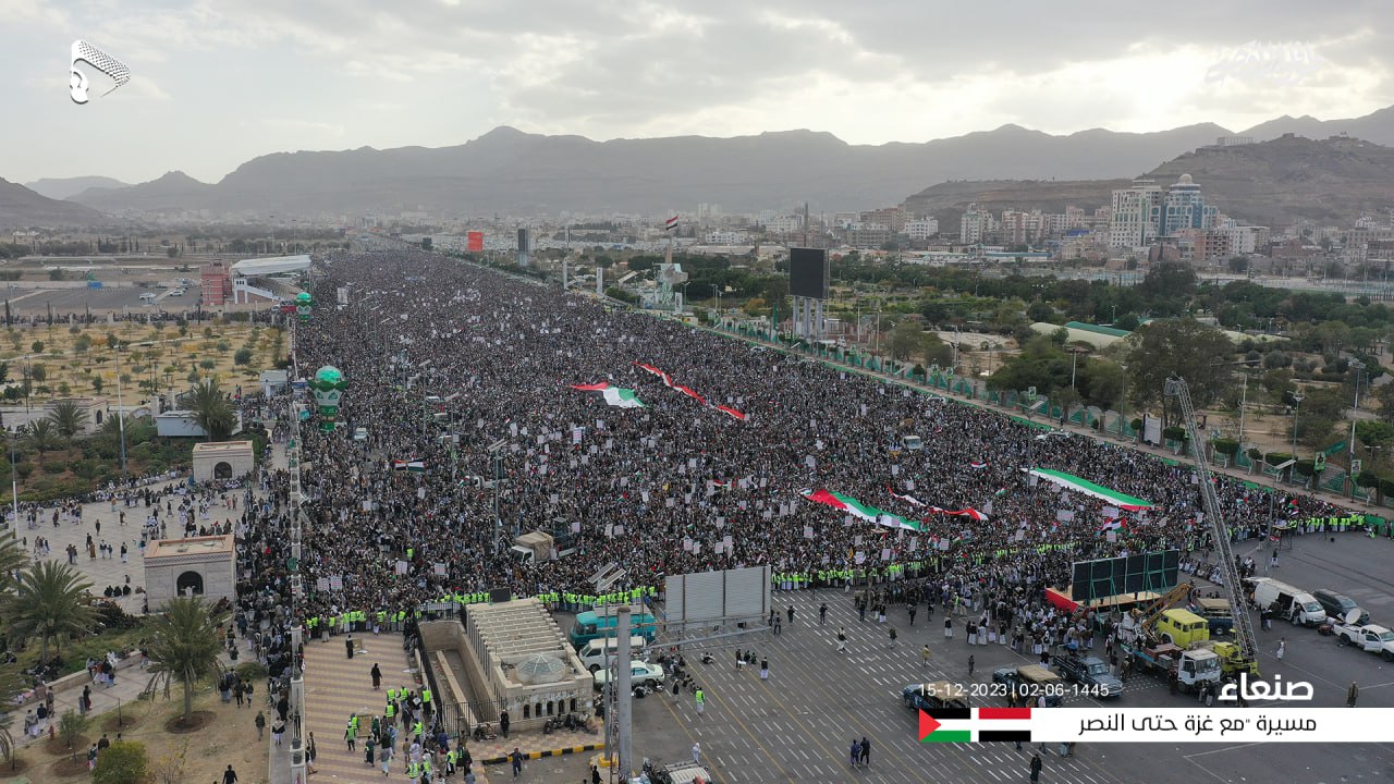 وفي الأول من ديسمبر احتشد اليمانيون في طوفان بشري ثامن بالعاصمة صنعاء، فيما كان الطوفان التاسع في الـ8 من ديسمبر الجاري أيضا، فضلاً عن مئات المسيرات والتظاهرات في مختلف المحافظات اليمنية على مدى الأسابيع الماضية منذ الإعلان عن معركة طوفان الأقصى.