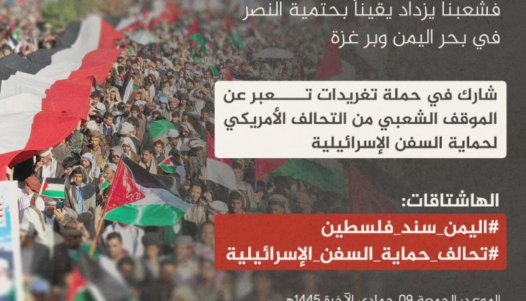 تنطلق في تمام الساعة التاسعة من مساء اليوم، حملة تغريدات عبر منصة “إكس” تعبر عن الموقف الشعبي من التحالف الأمريكي لحماية السفن الإسرائيلية.