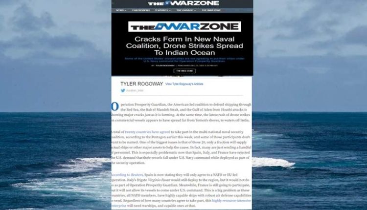 وذكر الموقعأنّ عملية “حارس الازدهار” التي تقودها الولايات المتحدة الأمريكية في البحر الأحمر، تظهر “تصدّعاتٍ كبيرةً”، في الوقت الذي “طالت فيه ضربات الطائرات المسيّرة السفن قبالة الهند، بعيداً من شواطئ اليمن”.