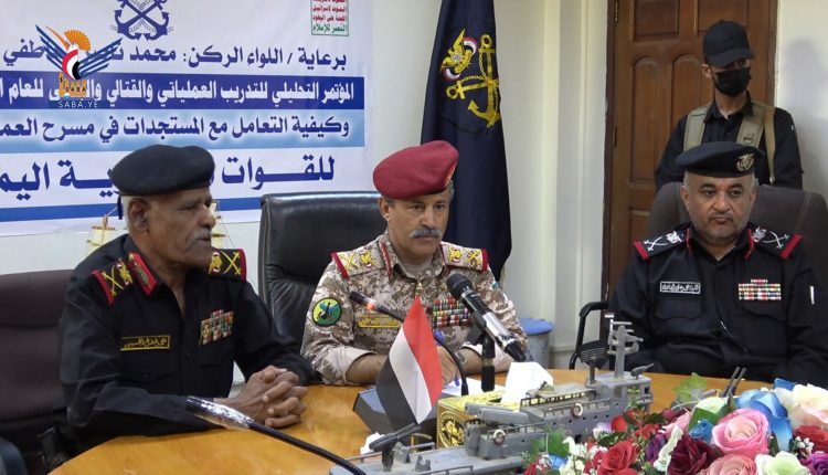 فيما ألقى قائد القوات البحرية اللواء الركن بحري محمد فضل عبدالنبي، كلمة نوه فيها بحضور وزير الدفاع بحكومة تصريف الأعمال المؤتمر التحليلي لمجمل المهام والأعمال القتالية لما نفذته القوات البحرية والدفاع الساحلي.