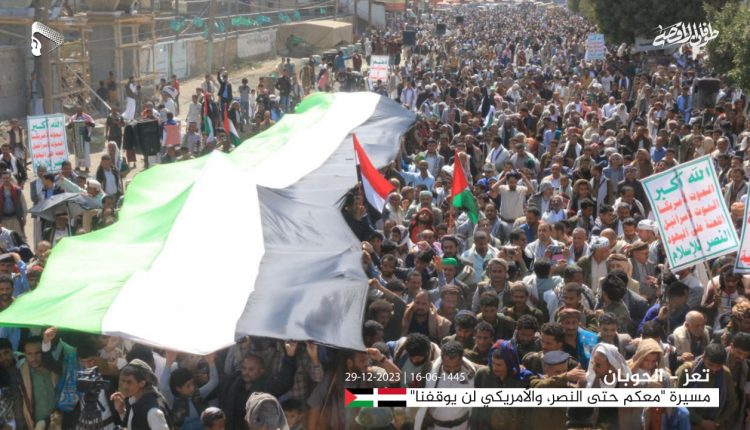 أبناء محافظة تعز في مسيرة كبرى تضامنية مع شعب فلسطين وإسناداً لمقاومته الباسلة