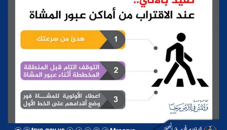 أخي السائق..! تقيد بالآتي عند الاقتراب من أماكن عبور المشاه أخي السائق..! تقيد بالآتي عند الاقتراب من أماكن عبور المشاه On يناير 1, 2024 Share يمني برس- منوعات Share