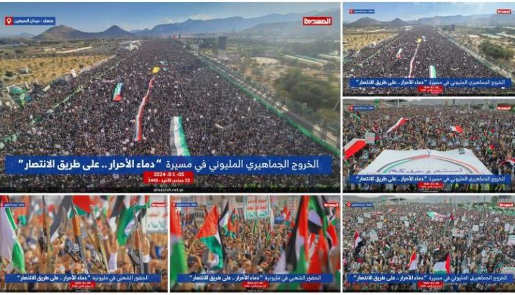 شهدت العاصمة صنعاء حضورا مليونية نصرة للشعب الفلسطيني تحت شعار (دماء الأحرار.. على طريق الانتصار).