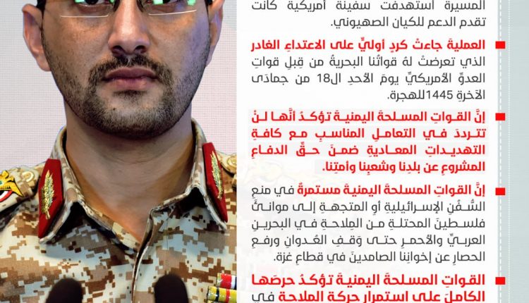 بيان-القوات-المسلحة-اليمنية-بشأن-استهداف-سفينة-أمريكية-كرد-أولي-على-الاعتداء-على-قواتنا-البحرية بيان القوات المسلحة بشأن قصف سفينة أمريكية (انفوجرافيك) بيان القوات المسلحة بشأن قصف سفينة أمريكية (انفوجرافيك) Last updated يناير 10, 2024 Share يمني برس- انفوجرافيك بيان-القوات-المسلحة-اليمنية-بشأن-استهداف-سفينة-أمريكية-كرد-أولي-على-الاعتداء-على-قواتنا-البحرية Share