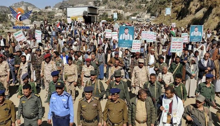 مديرية عتمة تشهد مظاهرة حاشدة تنديداً بالاعتداء الأمريكي البريطاني