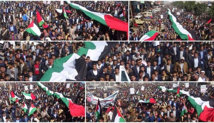 وأكد بيان صادر على المسيرة أن العدوان الأمريكي البريطاني على شعبنا لن يثنيه عن موقفه المساند للشعب الفلسطيني وسيستمر جيلا بعد جيل في مناهضة المشاريع الأمريكية الصهيونية والانتصار لمظلومية شعوب الأمة مهام كانت النتائج والتبعات.