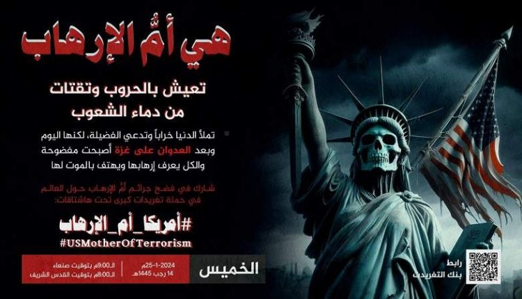 تنطلق في الساعة التاسعة من مساء اليوم الخميس، حملة تغريدات على مواقع التواصل الاجتماعي بعنوان (أمريكا أم الإرهاب).