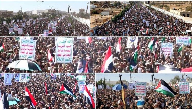 مسيرات حاشدة بمحافظة صعدة تحت شعار (اليمن وفلسطين خندق واحد)