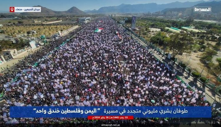 العاصمة صنعاء تشهد طوفان بشري مليوني في مسيرة “اليمن وفلسطين في خندق واحد”