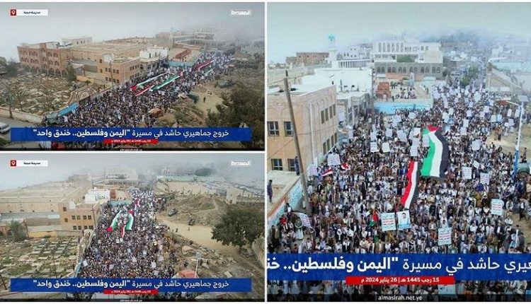حجة.. مسيرات ووقفات حاشدة تضامناً مع الشعب الفلسطيني تحت شعار” اليمن وفلسطين خندق واحد”