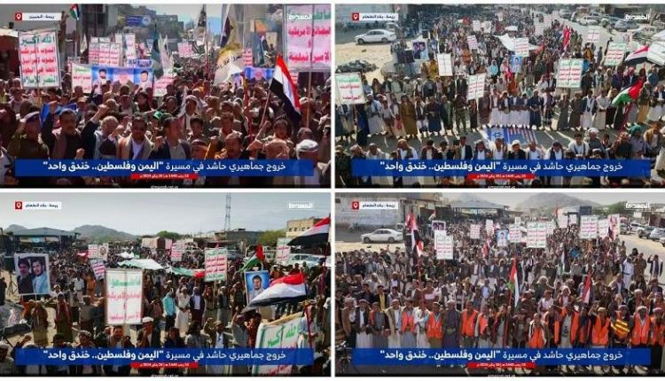 مسيرتان حاشدتان بمحافظة ريمة تحت شعار (اليمن وفلسطين خندق واحد)