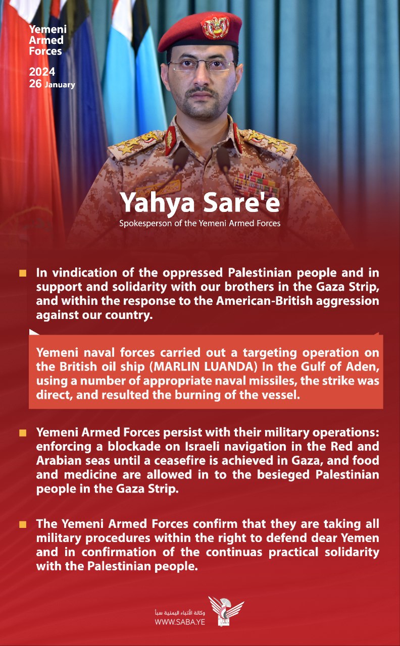 القوات المسلحة تحرق سفينة بريطانية القوات المسلحة تحرق سفينة بريطانية On يناير 26, 2024 Share يمني برس/ القوات المسلحة تحرق سفينة بريطانية. Share