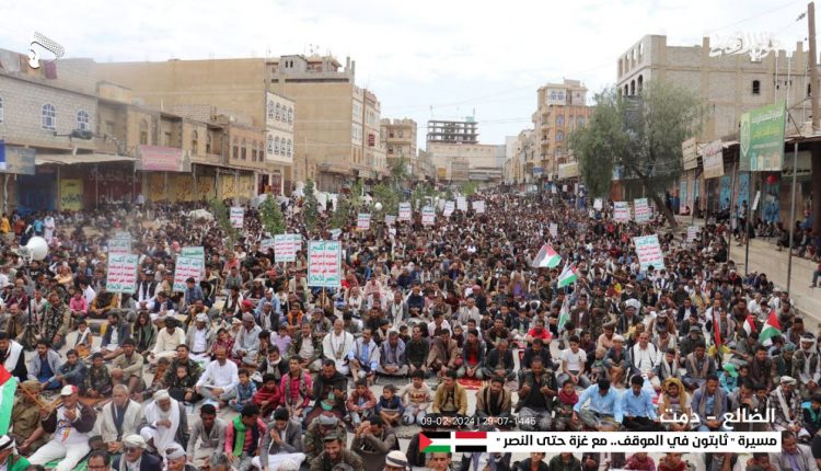 مسيرتان ووقفات جماهيرية في محافظة الضالع تحت شعار “ثابتون في الموقف.. مع غزة حتى النصر”