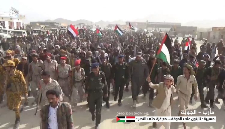 أربع مسيرات جماهيرية بمحافظة مأرب تؤكد موقفها الثابت في مساندة الشعب الفلسطيني ومقاومته الباسلة حتى النصر