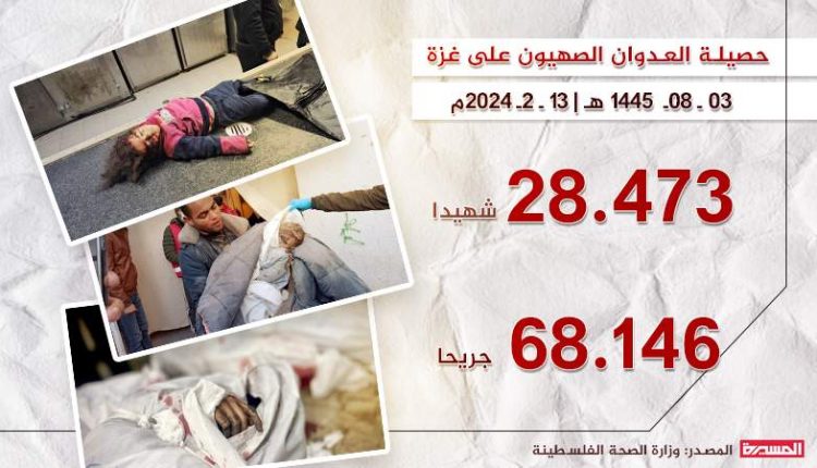 حصيلة العدوان على غزة تصل 28473 شهيداً و68146 إصابة