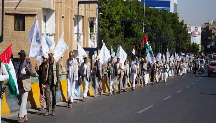 ورفع المشاركون العلمين اليمني والفلسطيني ولافتات نددت بالمجازر التي يرتكبها الكيان الصهيوني بدعم أمريكي ضد الأطفال والنساء بغزة وحصار أبنائها ومنع دخول الغذاء والدواء، بارتكاب أبادة جماعية بحق الشعب الفلسطيني.