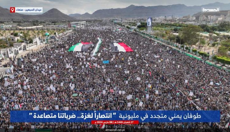 العاصمة صنعاء في طوفان شعبي مليوني متجدد إسنادا لفلسطين تحت شعار (انتصاراً لغزة… ضرباتنا متصاعدة)