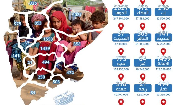 ولفت الحملي إلى أن ما تم صرفه من مشروع المساعدات النقدية وتأهيل المأوى والشتوية والطارئة بالشراكة مع مفوضية اللاجئين خلال العام الماضي 2023م، بلغ 16 مليوناً و515 ألف دولار، بقيمة ثمانية مليارات و753 مليوناً، و132 ألف ريال.