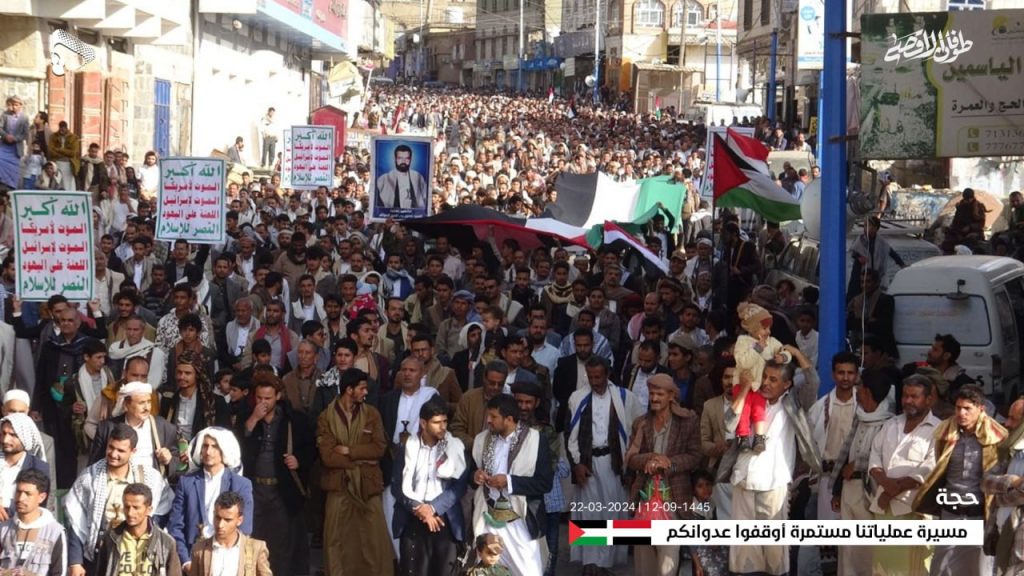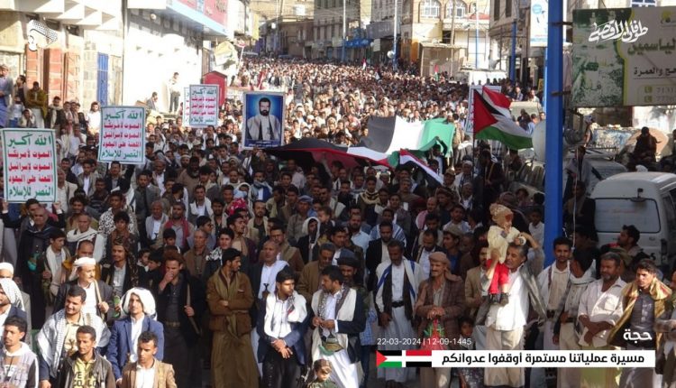 شهدت محافظة حجة، اليوم الجمعة، مسيرات جماهيرية حاشدة وغير مسبوقة نصرة للشعب الفلسطيني تحت شعار” عملياتنا مستمرة.. أوقفوا عدوانكم “.