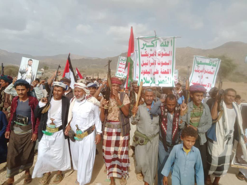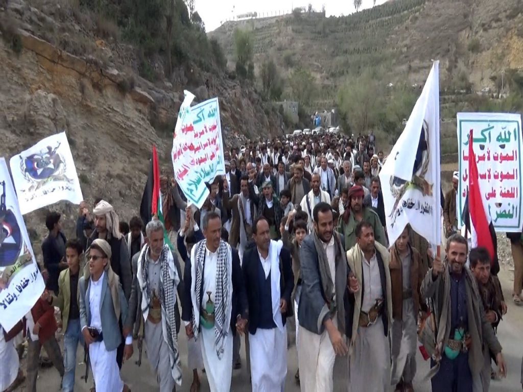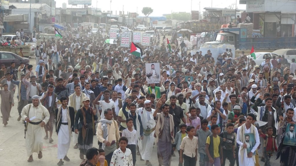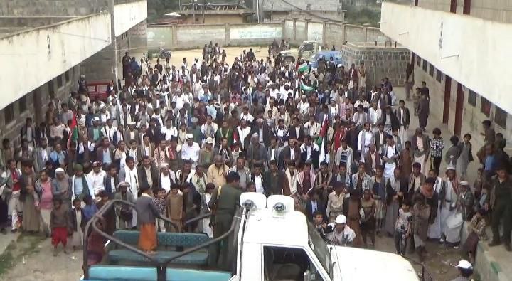 وجددوا في المسيرات التأييد المطلق لقائد الثورة السيد عبدالملك بدرالدين الحوثي لاتخاذ كافة الخيارات والقرارات دعماً للشعب الفلسطيني وعمليات القوات المسلحة نصرة للأقصى.