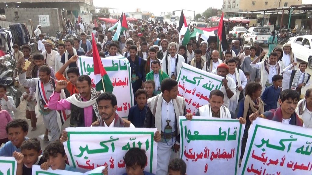 وأدان المشاركون في المسيرات المساعي الأمريكية لعرقلة كل المساعي الرامية لإيقاف العدوان وإدخال الغذاء والدواء للمظلومين والمستضعفين في قطاع غزة وانبطاح زعماء العرب جراء ما يتعرض له الشعب الفلسطيني من مجازر وحرب إبادة.