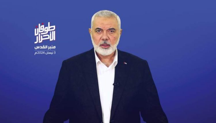 وقال هنية -في كلمة له اليوم الأربعاء خلال فعالية “منبر القدس – طوفان الأحرار ” بمناسبة يوم القدس العالمي-: إن معركة طوفان الأقصى تعطي الأمل بأن تحرير القدس وتطهيرها من الغزاة المحتلين حتمية تاريخية وآية قرآنية وعهد الرجال مع الله سبحانه.